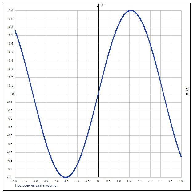 Тогда график заданной функции будет равен графику функции у = sinx, но с "выколотыми" точками х = πn, n ∈ Z.