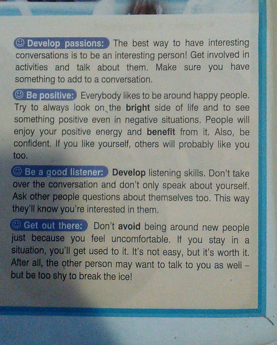 к ней. Это нелегко, но оно того стоит. В конце концов, другой человек, может быть, хочет поговорить с вами, а вы будете слишком застенчивы, чтобы переступить себя!