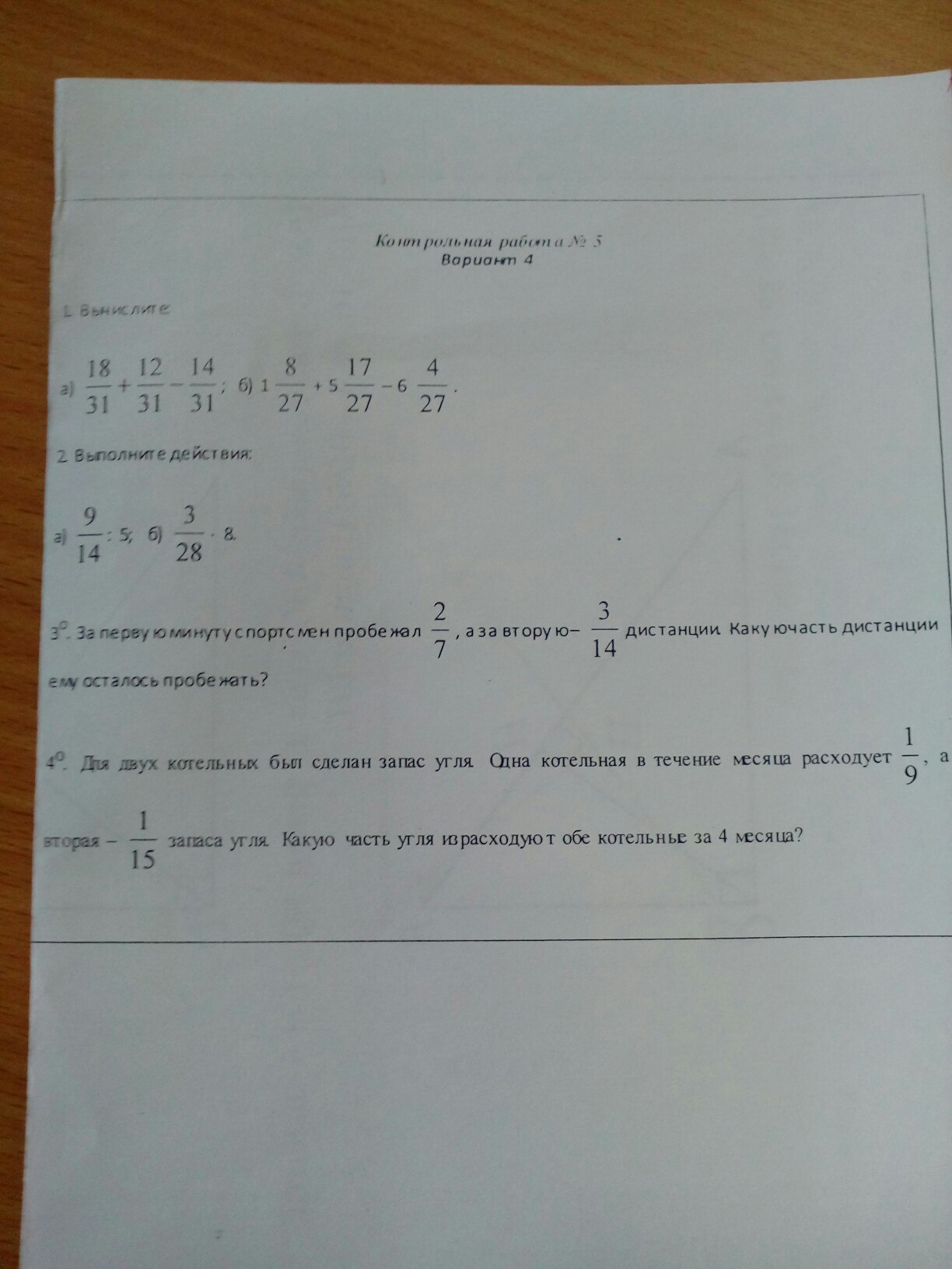 номер1 а)16/31 б)21/27 номер2 а)9/70 б)3/224номер3 1/14 осталось номер4 (1/9+1/15)×4=32/45 4 месяца