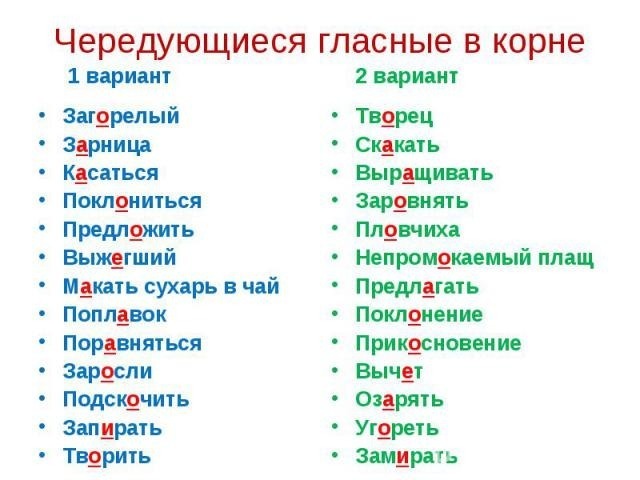 избирать — изберёшь;отпирать — отпереть;сдирать — сдеру, сдерёт; растирать — растереть;обжигать — обжёгший; застилать — застелить ,заблистать — заблестеть; вычитание — вычеты., гореть, угорелый, подгореть, подгорелый, подгоревший, погорелец, сгореть, расти, растение, выращивать, наращение – выросший, заросли, поросль,