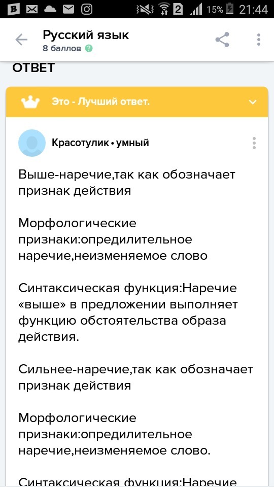 Разбираем: выше Начальная форма: ВЫШЕ Часть речи: наречие Формы: выше, выша, выши, вышу, вышей, вышею, высокий, высокого, высокому, высоким, высоком, высокая, высокой, высокую, высокою, высокое, высокие, высоких, высокими, высок, высока, высоко, высоки, повыше, высочайший, наивысочайший, высший, наивысший, высочайшего, наивысочайшего, высшего, наивысшего, высочайшему, наивысочайшему, высшему, наивысшему, высочайшим, наивысочайшим, высшим, наивысшим, высочайшем, наивысочайшем, высшем, наивысшем, высочайшая, наивысочайшая, высшая, наивысшая, высочайшей, наивысочайшей, высшей, наивысшей, высочайшую, наивысочайшую, высшую, наивысшую, высочайшею, наивысочайшею, высшею, наивысшею, высочайшее, наивысочайшее, высшее, наивысшее, высочайшие, наивысочайшие, высшие, наивысшие, высочайших, наивысочайших, высших, наивысших, высочайшими, наивысочайшими, высшими, наивысшими - Другой вариант: Начальная форма: ВЫША Часть речи: предлог - Другой вариант: Начальная форма: ВЫСОКИЙ Часть речи: существительное Грамматика: дательный падеж, слово обычно не имеет множественного числа, единственное число, женский род, топоним, неодушевленное - Другой вариант: Часть речи: прилагательное Грамматика: качественное прилагательное, сравнительная степень прилагательного