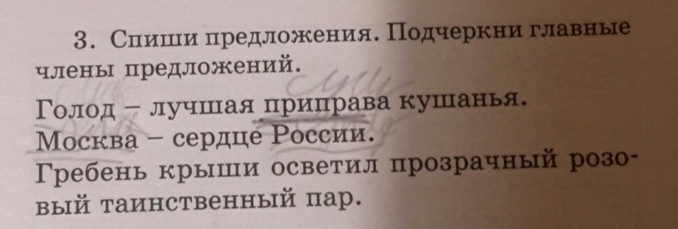 спиши предложения. Подчеркну главные члены предложений. упр 3