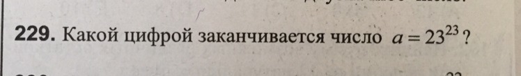 23 оканчивается на 3, а степень 23 тоже оканчивается на 3. Следовательно все это большое число оканчивается на 3 в третьей степени, то есть 3*3*3=27 7 это последняя цифра числа