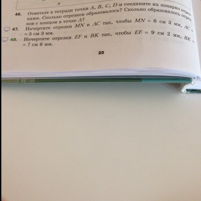 просто начерти два отрезка.Длинна первого 9см 2мм , а вторго 7см 6мм