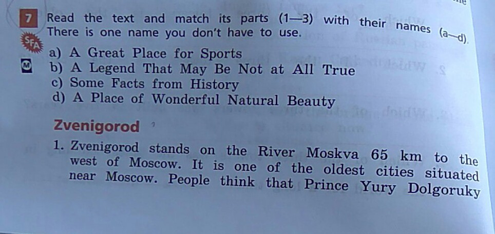 Прочитай текст и соотнеси его части (1-3) с названиями (a-d). Здесь есть одно лишнее название.