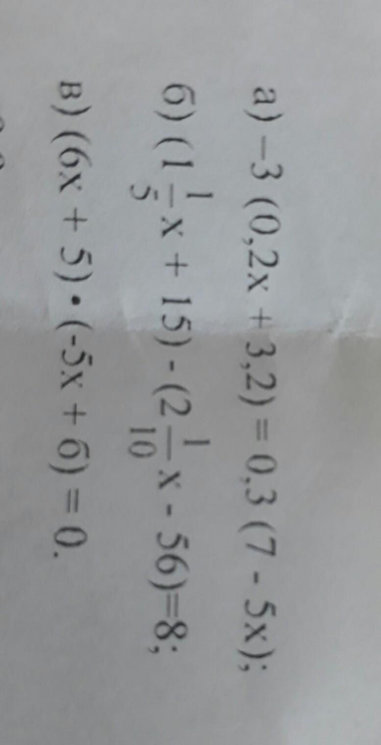 а) 3(0,2х+3,2)=0,3(7-5х)