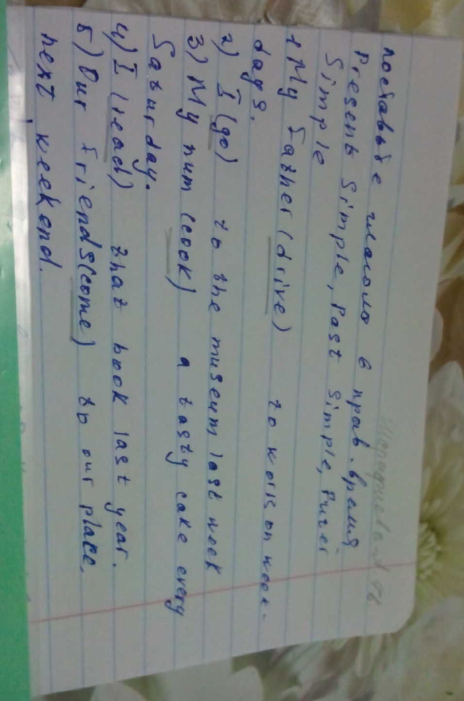 поставьте глаголы в правильное время Present Simple ,Past simple,Futer Simple