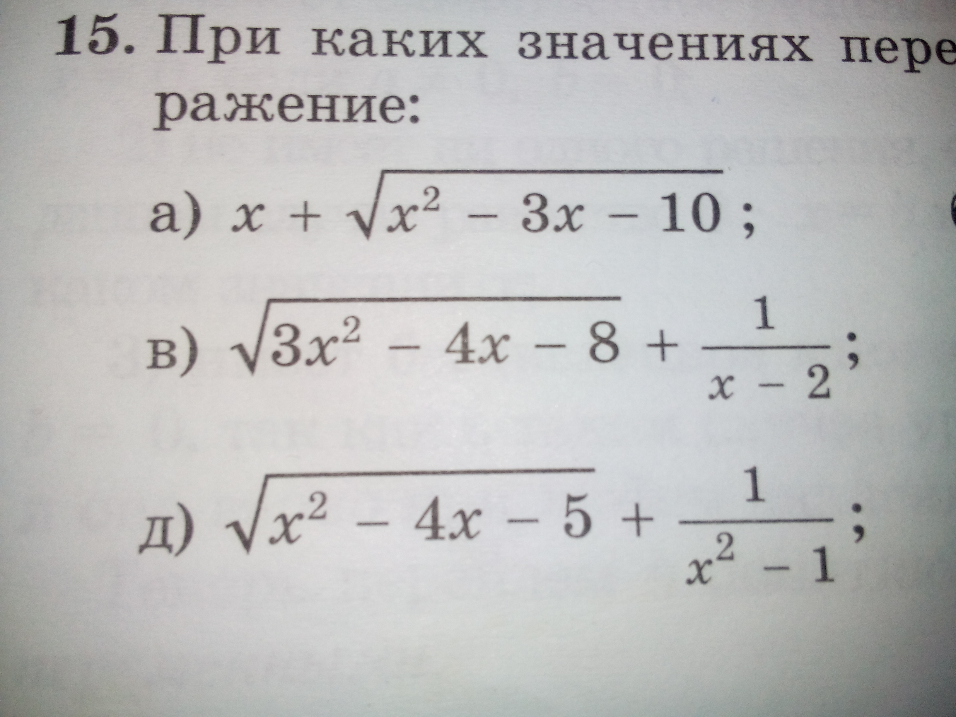При каких значениях переменной имееет смысл выражение: (помогите решить пример под буквой А)