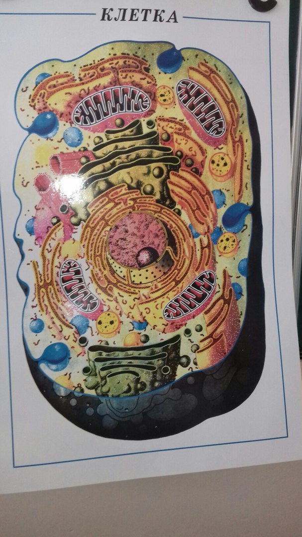 рибосомы находятся на шероховатой ЭПС ( это такая система канальцев вокруг ядра) , лизосомы тут вроде изображены как жёлтые шарики