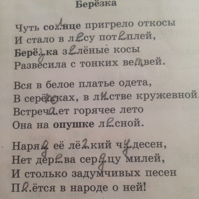 Прочитайте стихотворение . Спиши, вставь пропущеные буквы. Выделенные слова разбери по составу. Какие эпитеты использует автор для описания березы?