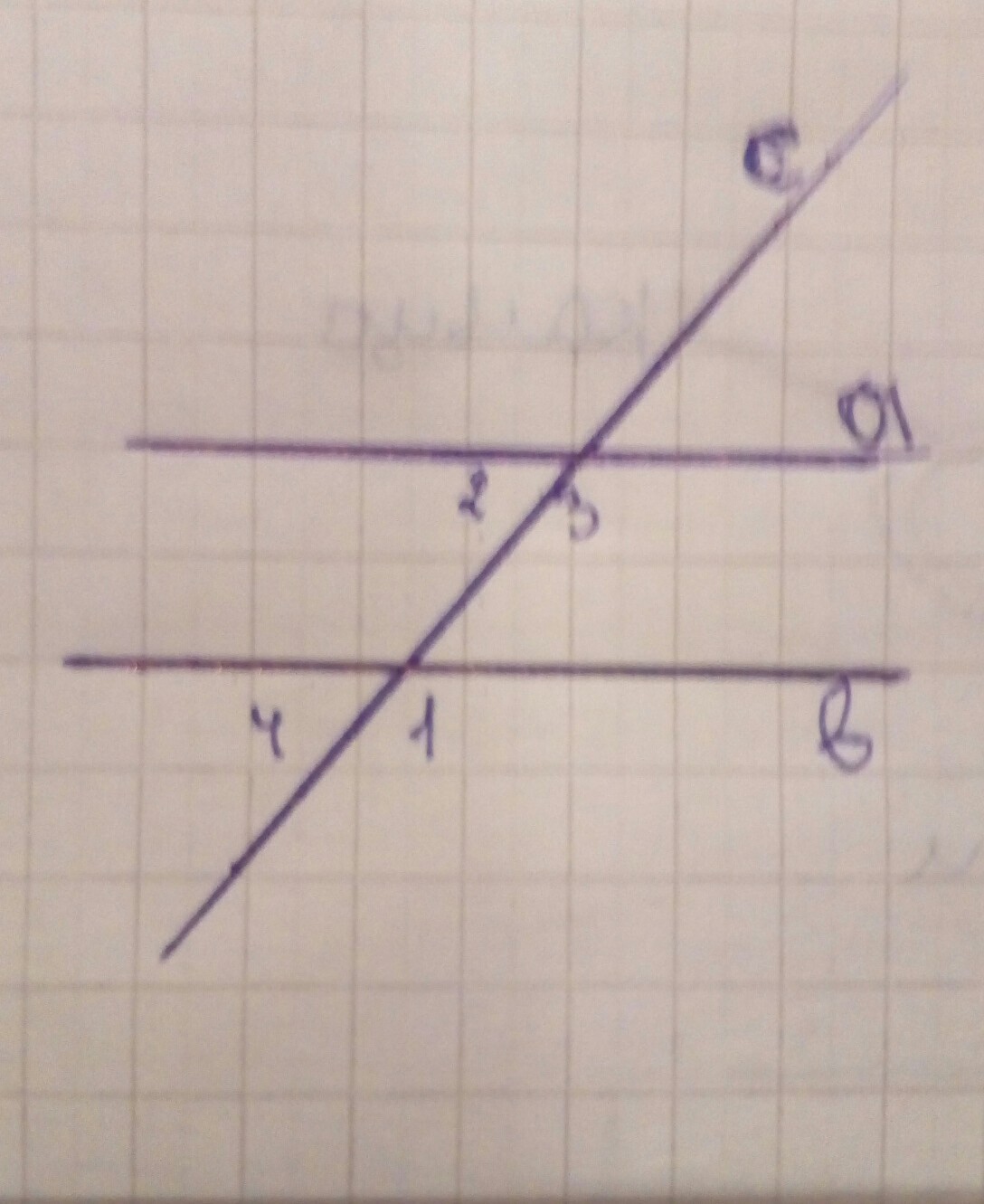 Углы 2 и 3, 1 и 4, смежные, то есть в сумме дают 180 градусов.