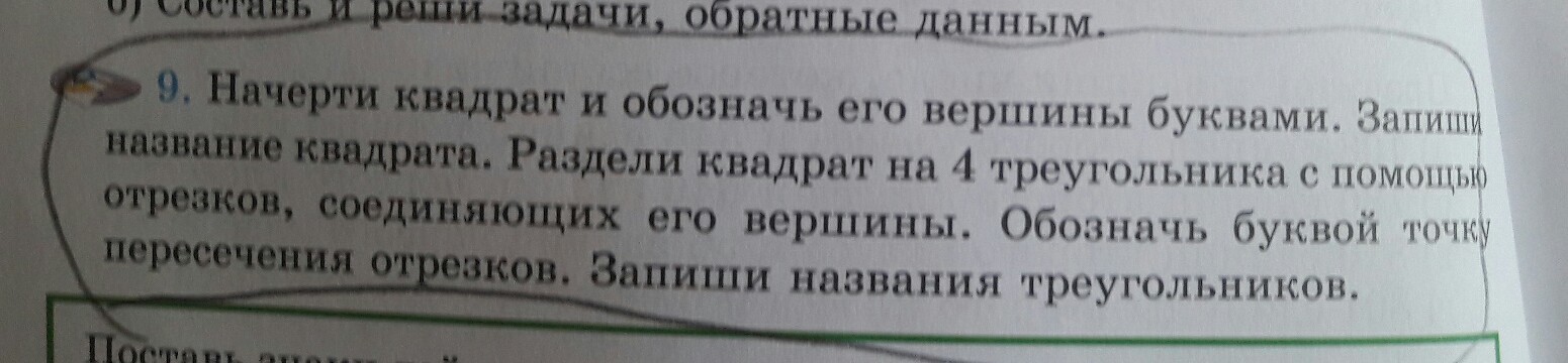 разделили квадрат диагоналями-отрезками АС и BD.