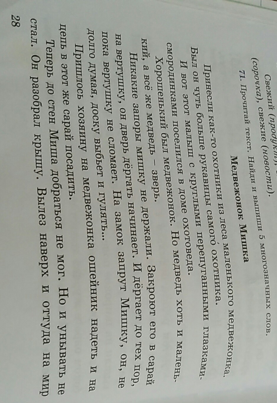 по рассказу ,,Медвежонок Мишка'' найти 5 многозначных слов