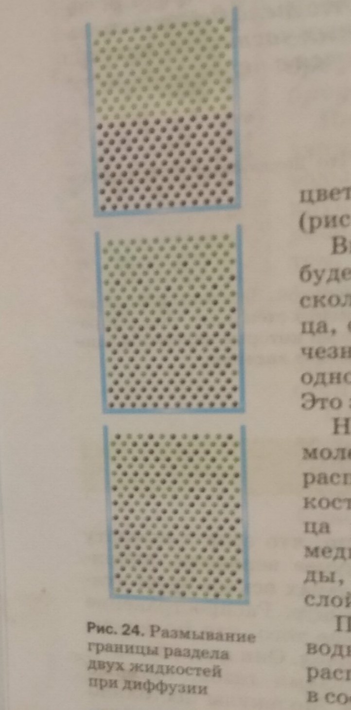 Объясните процесс протекания диффузии в жидкостях