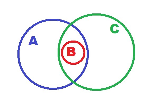 A - множество равнобедренных треугольников, B - множество равносторонних и C - множество остроугольных треугольников. помогите нарисовать круги Эйлера