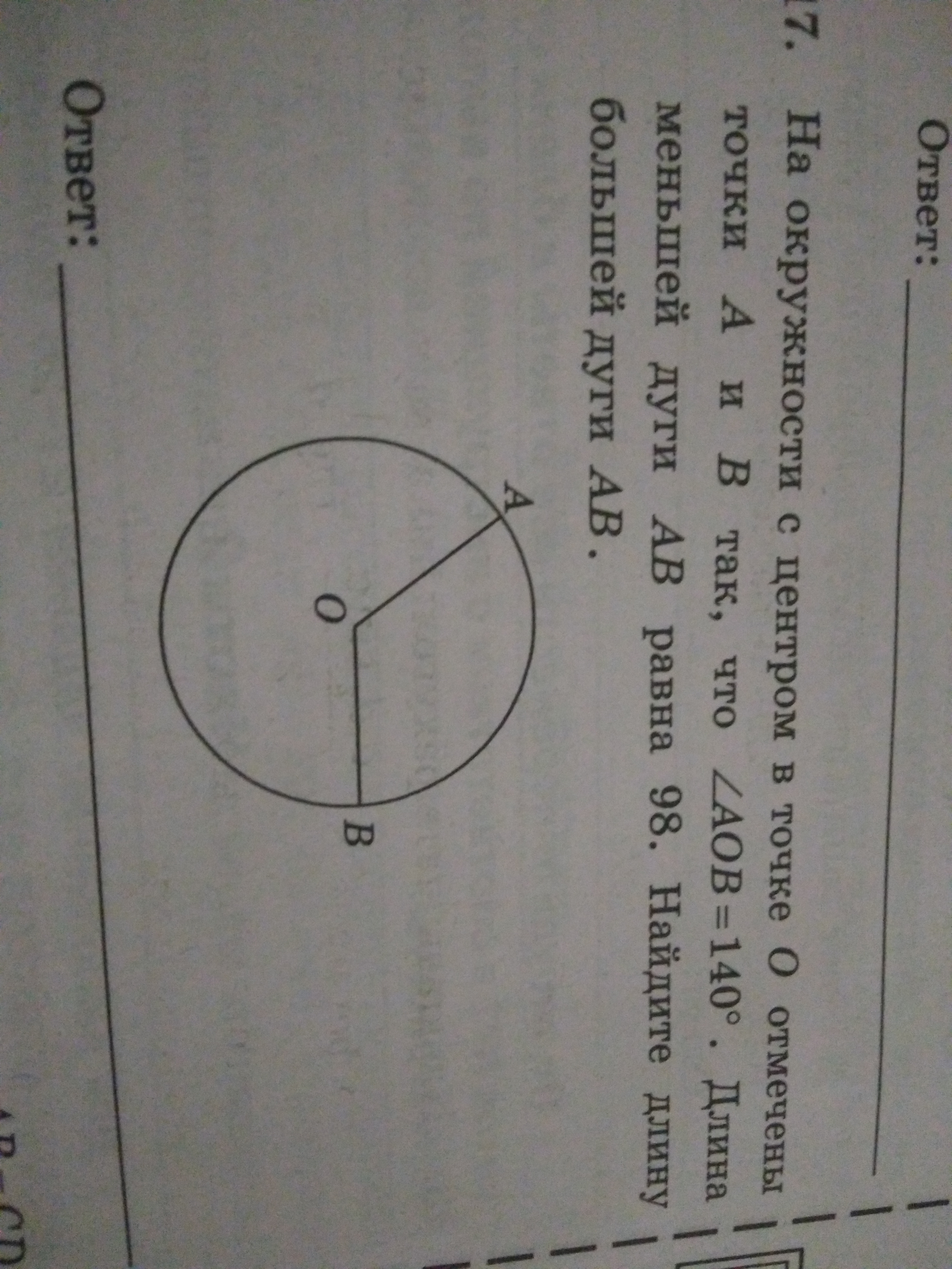 262 длина большей дуги АВ