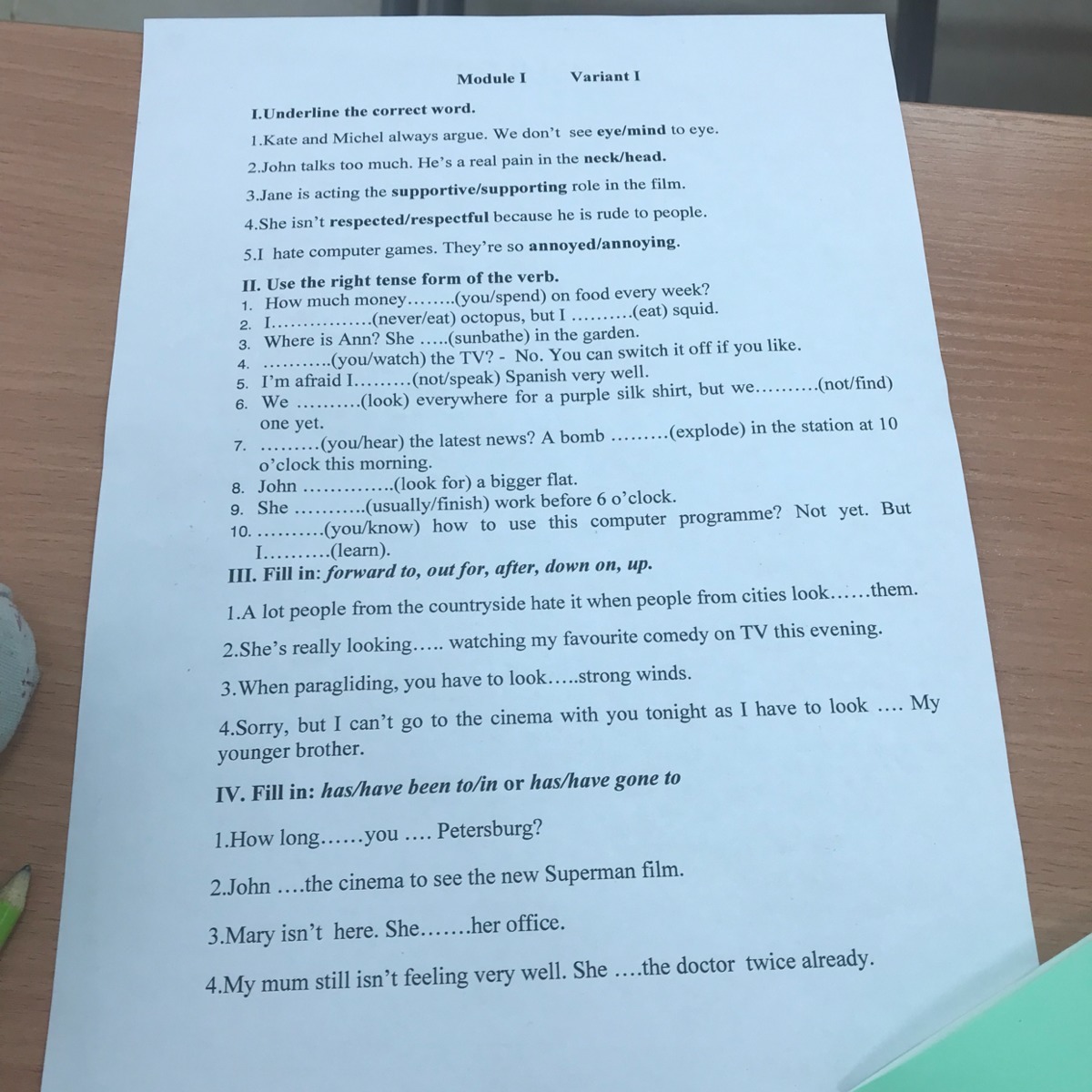John has gone to...