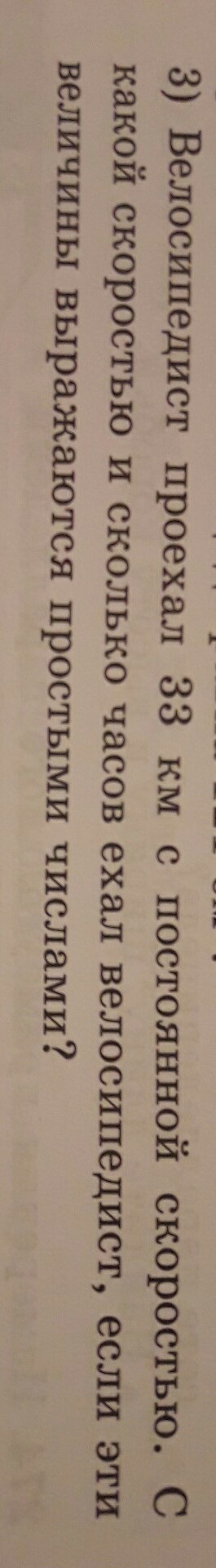 33 делится только на 3 и 11, значит он ехал со скоростью 11 км/ч 3 часа или со скорость 3 км/ч 11 часов