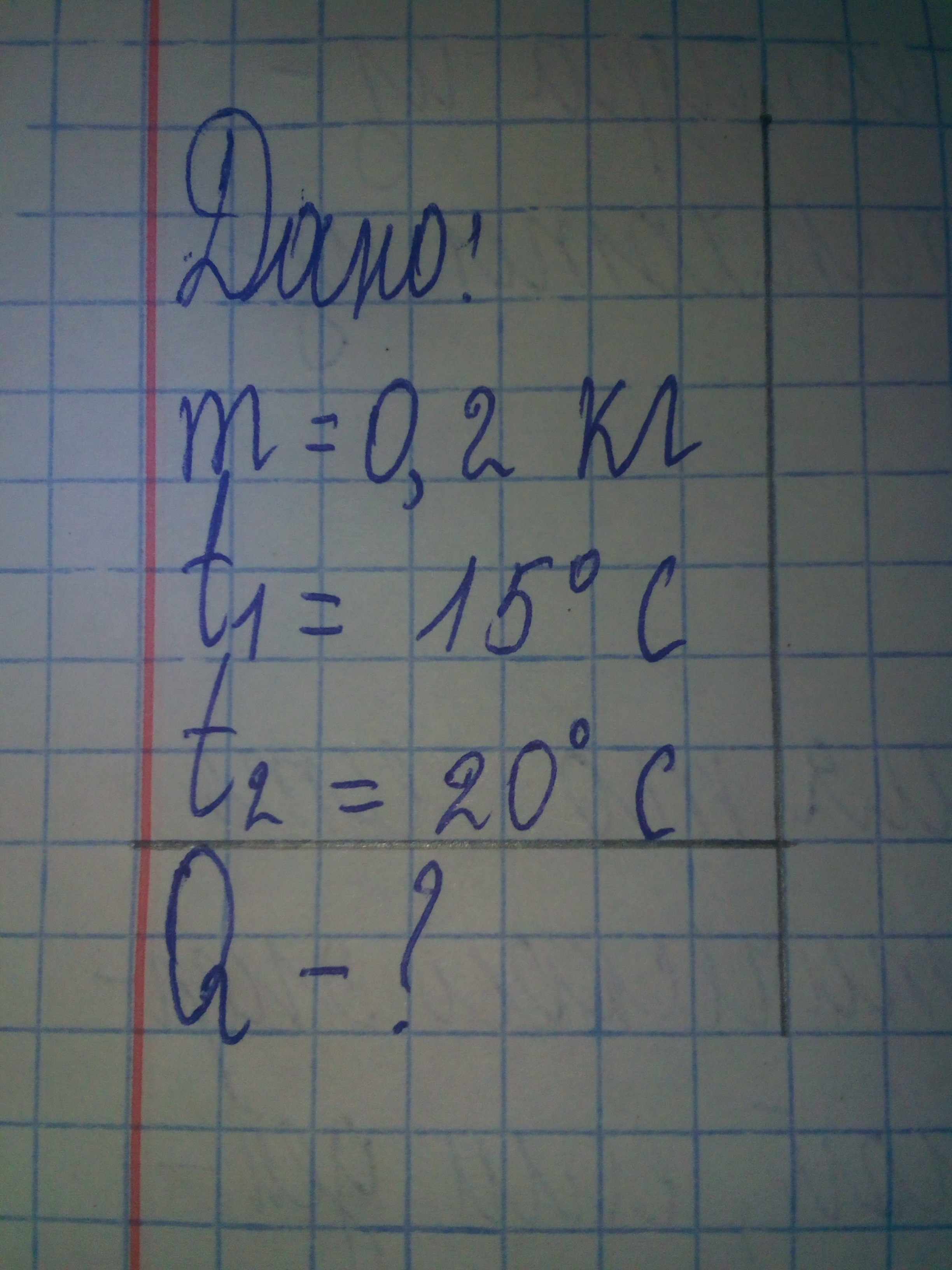 Q=4200*0,2(20-15)==4200Дж