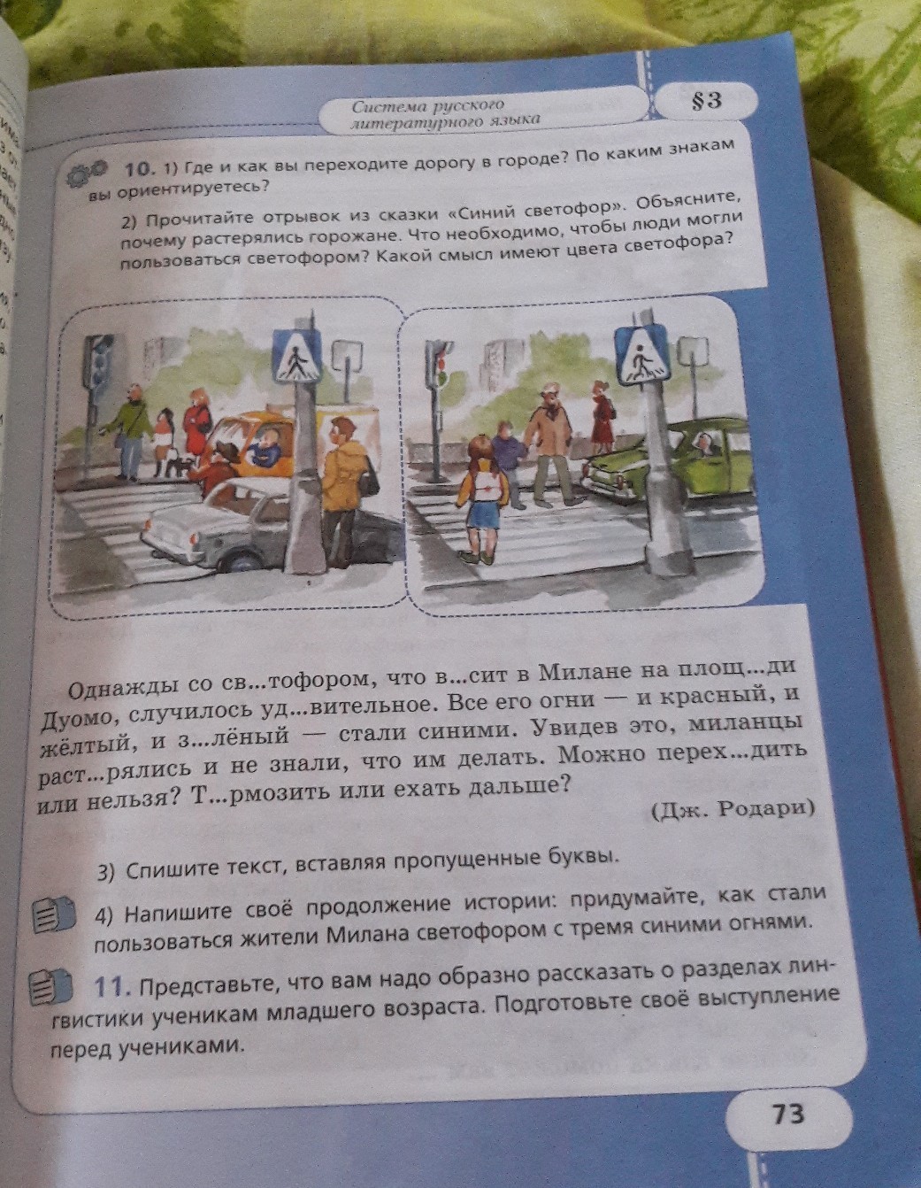Однажды со светофором ,что висит в Милане на площади Дуомо ,случилось удивительное .Все его огни-и красный , и жёлтый , и зеленый -стали синими . Увидев это Миланцы растерялись и не знали , что им делать . Можно переходить или нельзя ?Тормозить или ехать дальше ?
