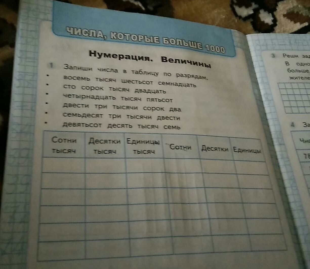 Запиши числа в таблицу по разрядам.