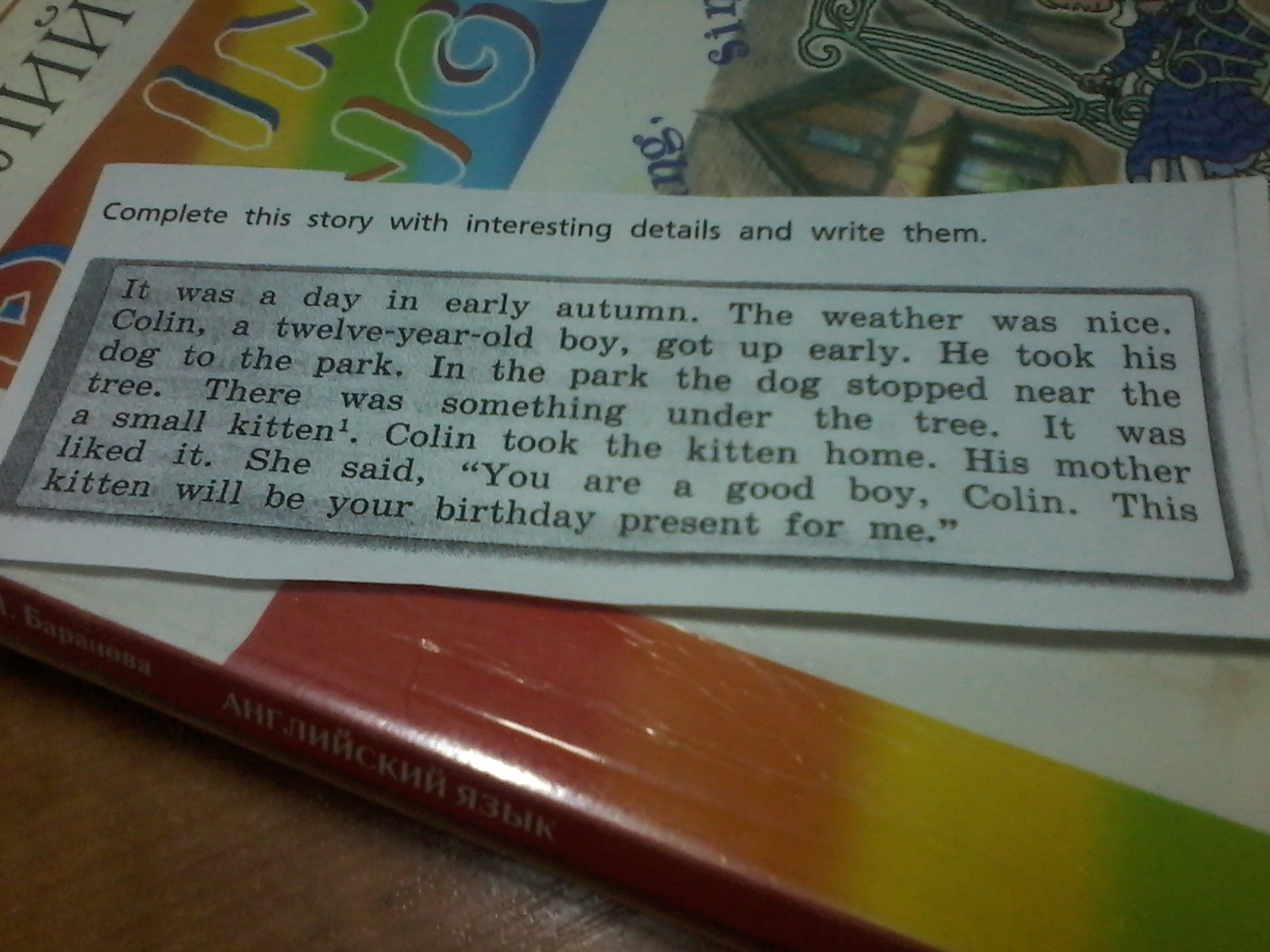Тут можно продолжить про Колина, но лучше скреативь и напиши про собаку: