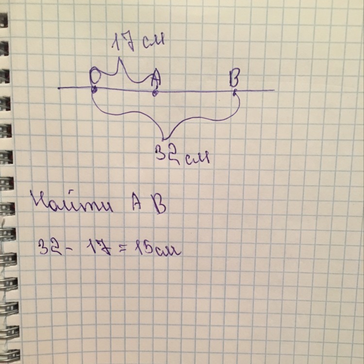 на прямой отмечены точки A ,O ,B найдите расстояние между точками A и B ,если OB=32см AO =17см а точка A лежит между точками O и B