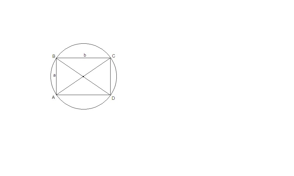 Центр окружности, описанной около прямоугольника, - точка пересечения диагоналей. Диагональ является его диаметром.