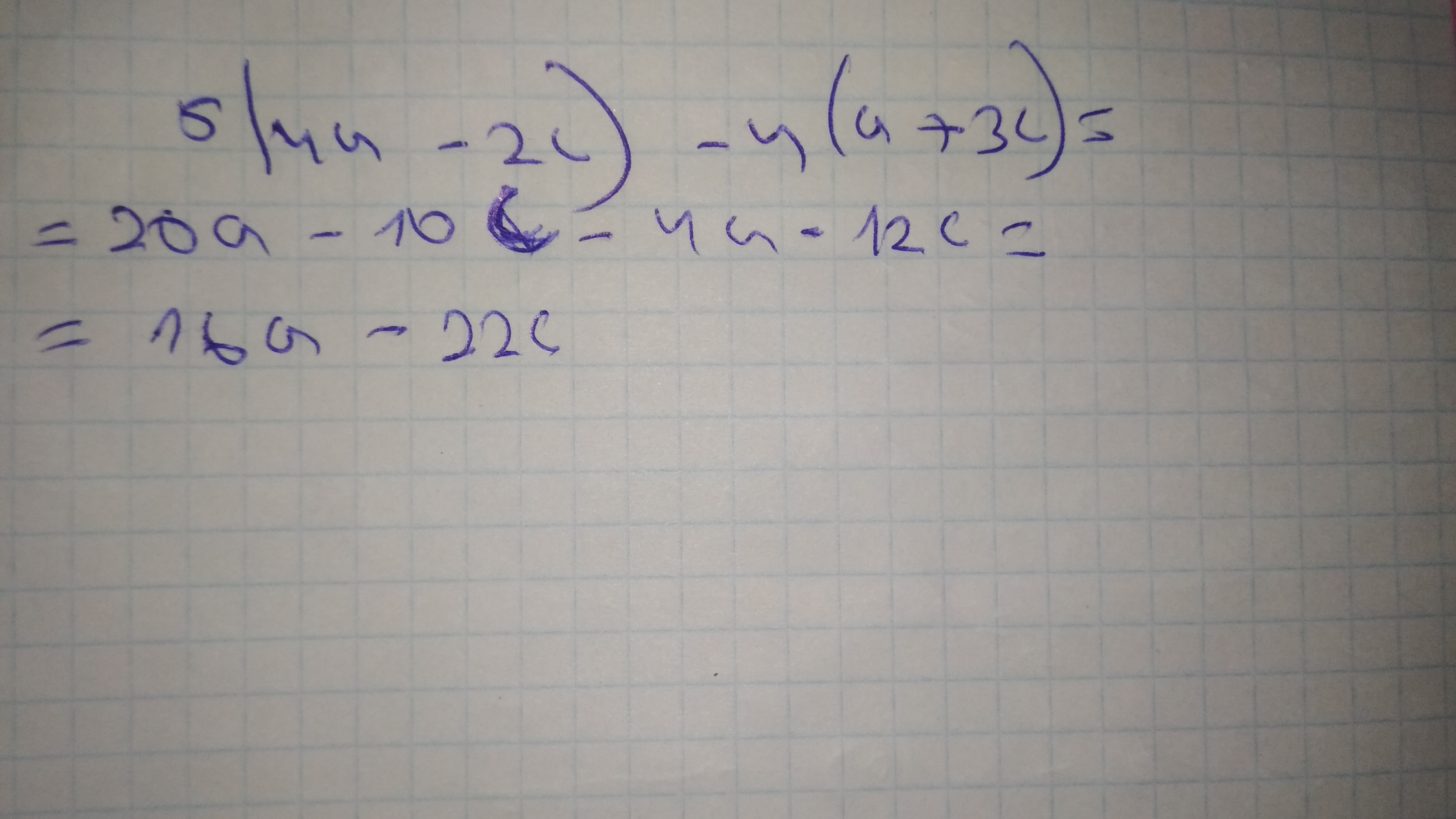 5(4a-2c)-(a+3c)=20a-10c-4a-12c=16a-22c