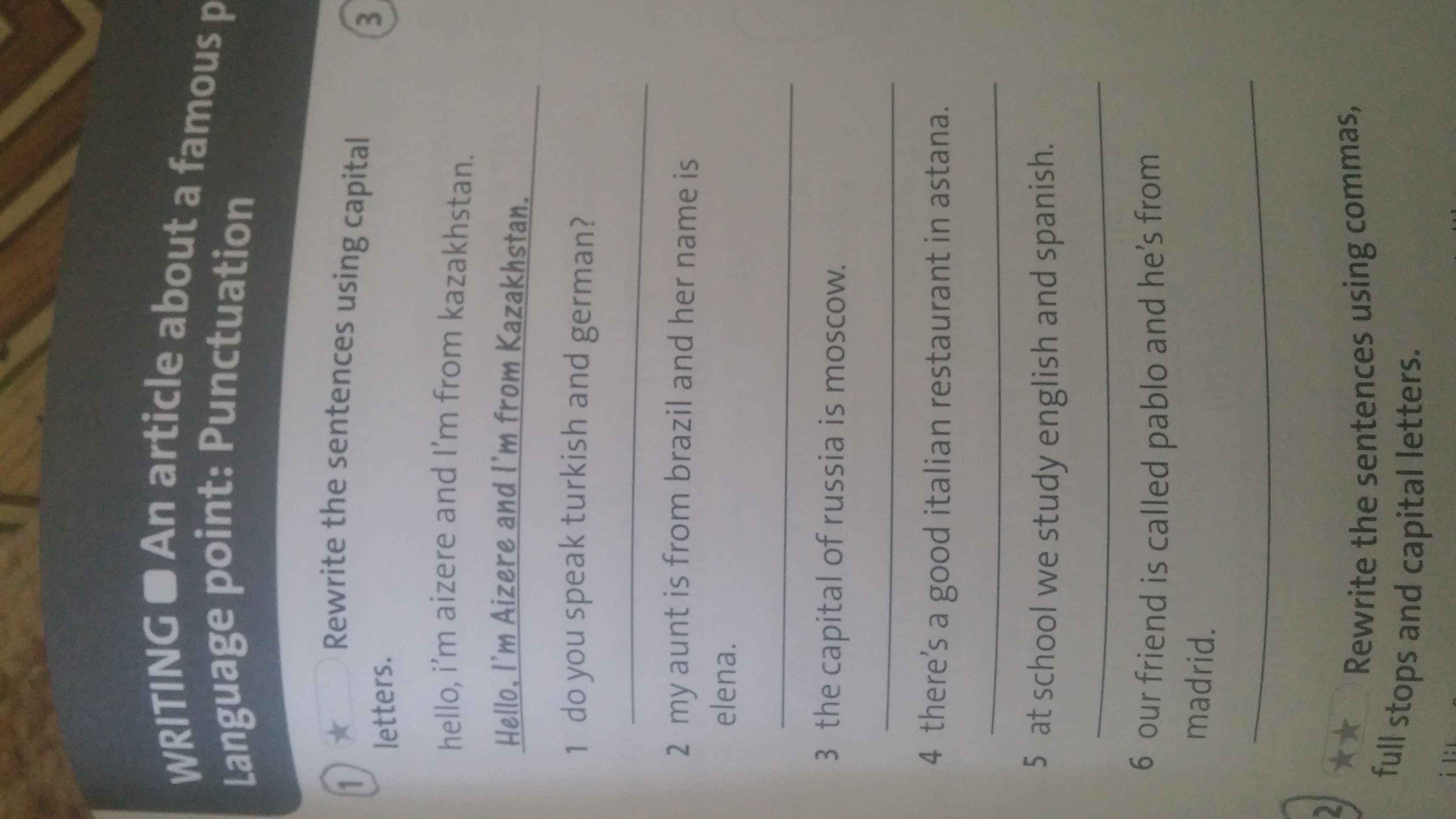 2) My aunt is from Brazil and her name is Elena.