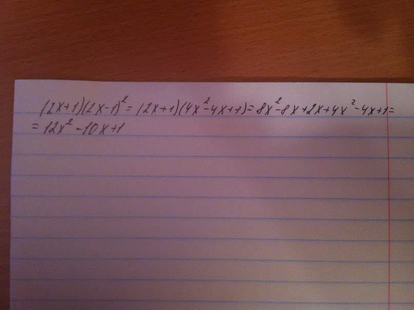 записать многочлен в стандартном виде: (2x + 1)(2x - 1)^2