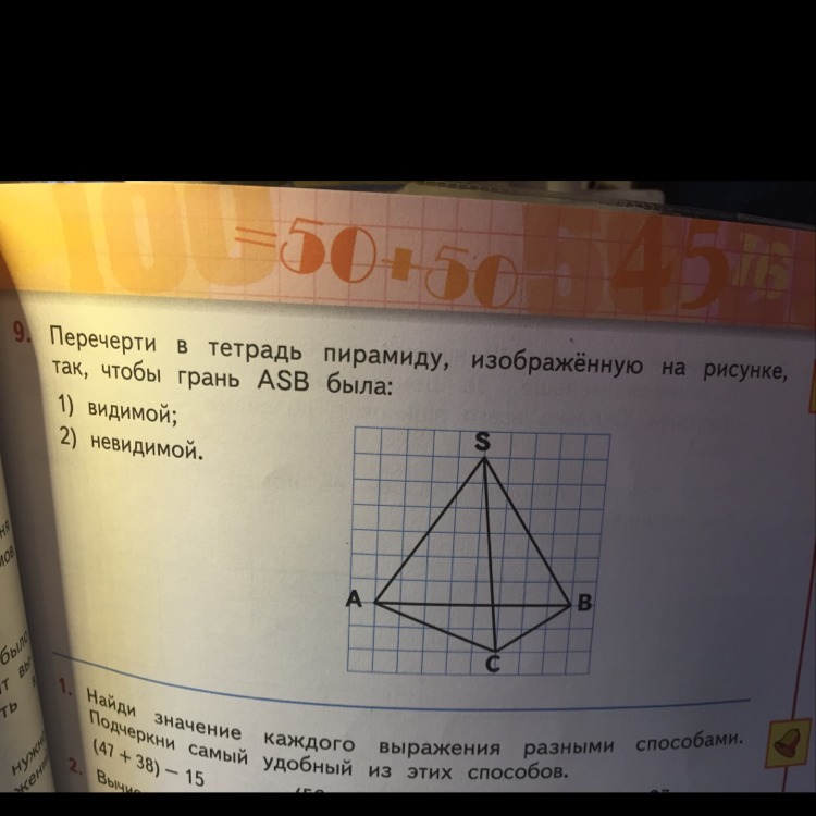 Перечерти в тетрадь пирамиду, изображенную на рисунке , так, чтобы грань ASB была:
