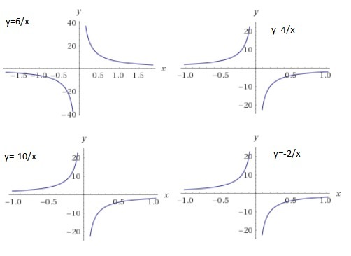 пострить график функции: у=6/х; у=-10/х; у=4/х; у=-2/х; см.табл.у=1/х