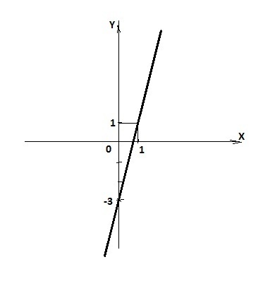 х=0, y=-3 и, например, х=1, y=1. Через эти две точки проводим прямую.