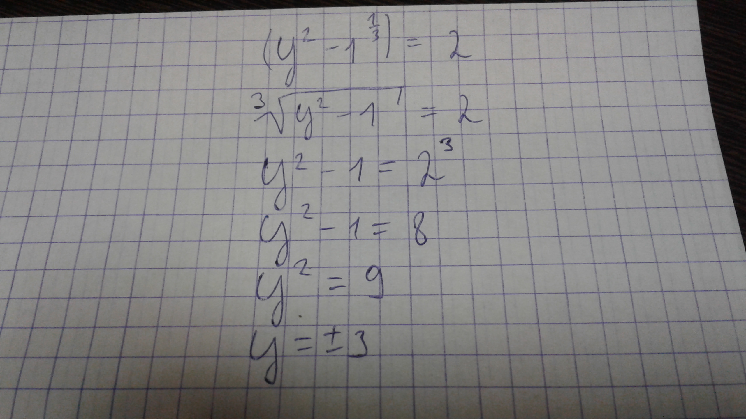Вычислите : (у^2 -1)^1/3=2