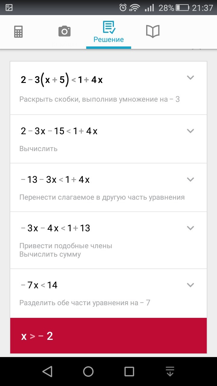 Решите неравенство и изобразите множество его решений на координатной прямой 2-3(х+5)<1+4x
