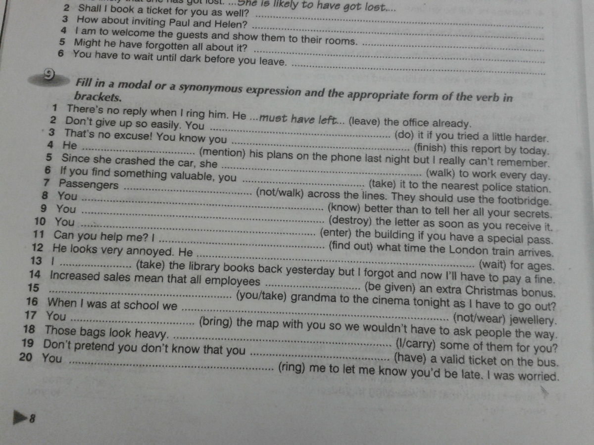 поставте глаголы в нужной форме и вставте модальные глаголы