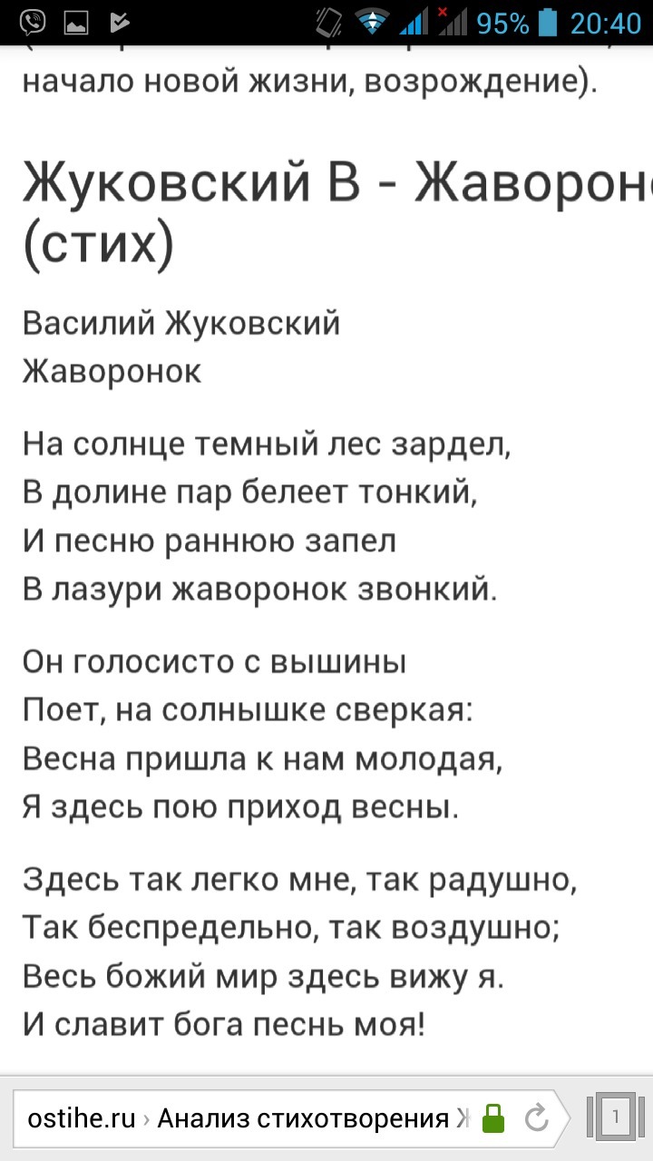 напишите отзыв к стихотворению Жуковского " Жаворонок" Своими словами а не с интернета 7-10 предложений, буду благодарна.