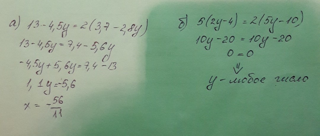 а) 13-4,5у=2*(3,7-2,8у)