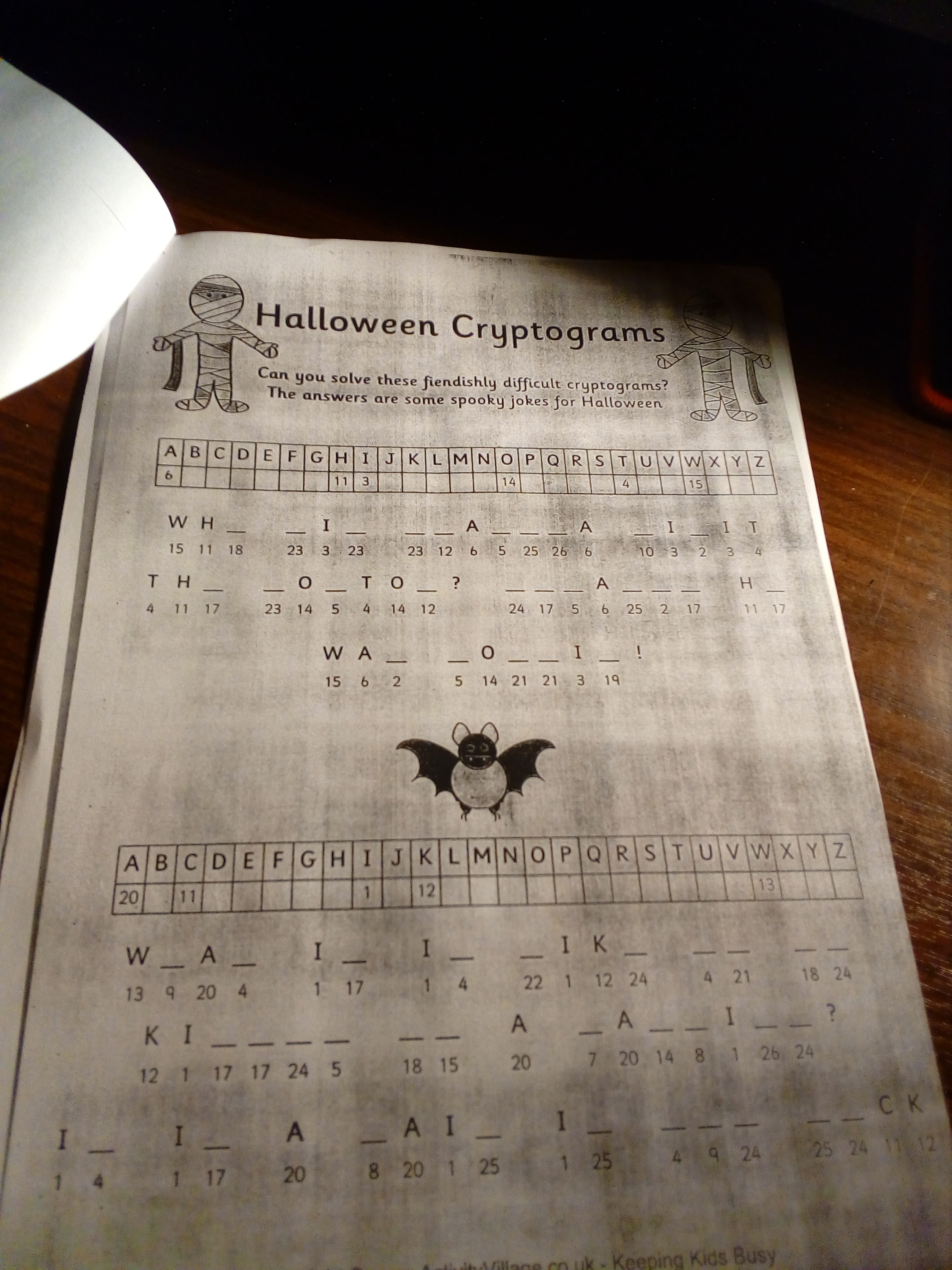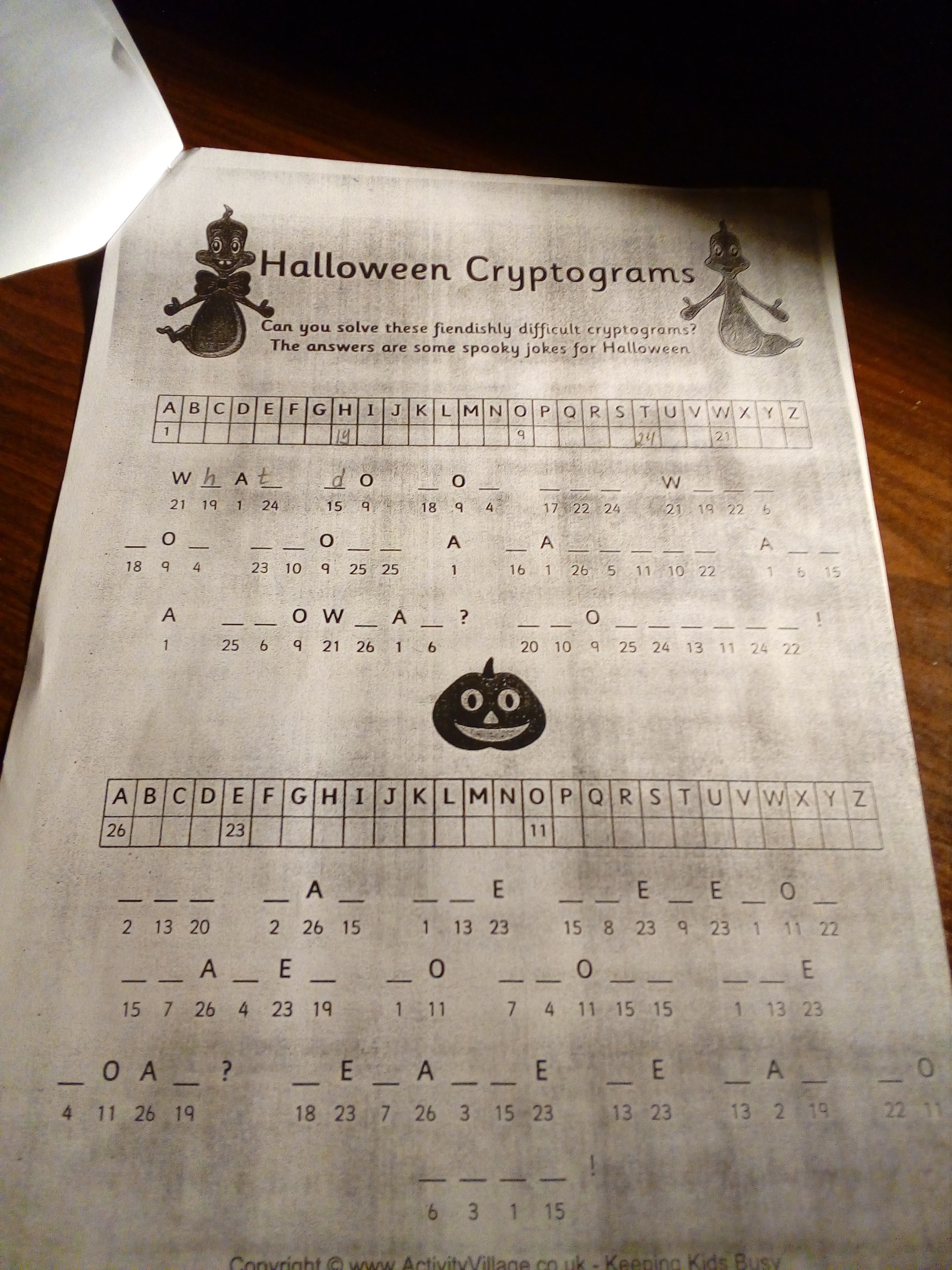 Can you solve these fiendishly difficult cryptograms? The answers are some spooky jokes for Halloween. ОЧЕНЬ СРОЧНО!!!ПОЖАЛУЙСТА!!!ДАЮ 80 БАЛЛОВ!!!ЧЕСТНО!!!ТОЛЬКО СДЕЛАЙТЕ!!!КТО НЕ ЗНАЕТ ТО НЕПИШИТЕ. ПЕРЕВОД ЗАДАНИЯ НЕ ПИШИТЕ В ОТВЕТ. НАПИШИТЕ ТОЛЬКО ЧТО ПОЛУЧИЛОСЬ И ВСЕ!!! ПОЖАЛУЙСТА!!!