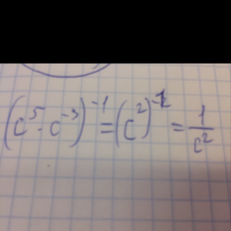 Помогите решить пожалуйста пример алгебра 9 класс. (c^5•c^-3)^-1 при c=1,3