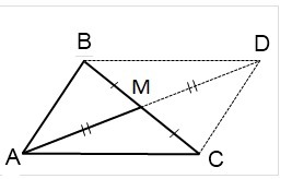 На луче AM отложим отрезок MD, MD=AM и соединим точку D с точками B и C.Поскольку в полученном четырехугольнике ABCD диагонали точкой пересечения делятся пополам, то ABCD — параллелограмм (по признаку). А значит, мы можем применить свойство диагоналей параллелограмма: сумма квадратов диагоналей параллелограмма равна сумме квадратов его сторон. Имеем: BC²+AD²=2(AB²+AC²). Отсюда b²+(2m)²=2(c²+AC²), b²+4m²=2c²+2AC², AC²=(b²+4m²-2c²)/2.