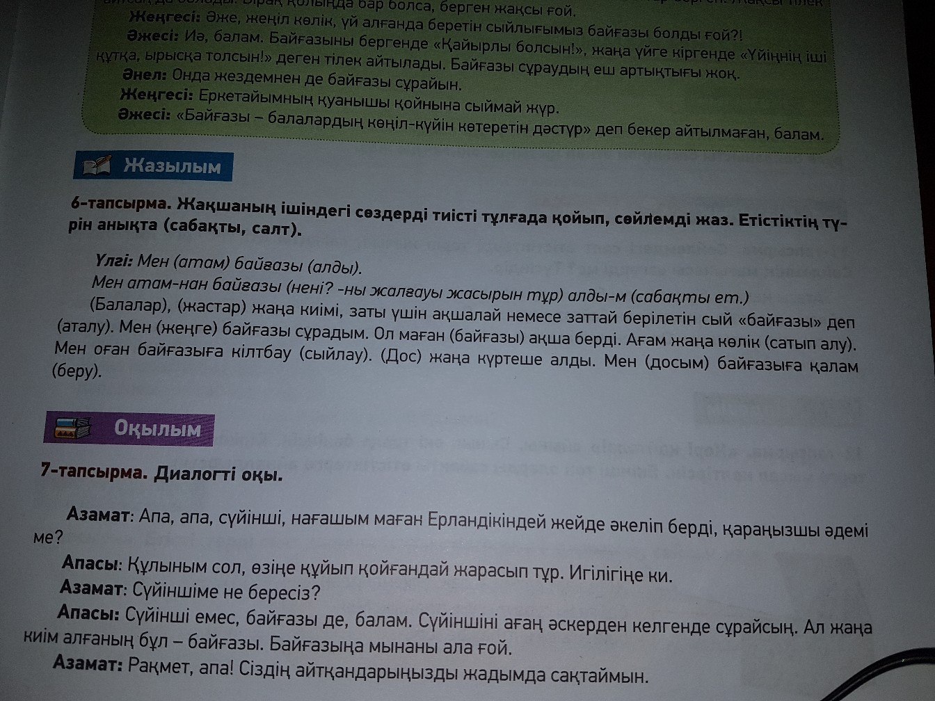 Мен жеңгем-нен (нені?) байқазы сұрадым.