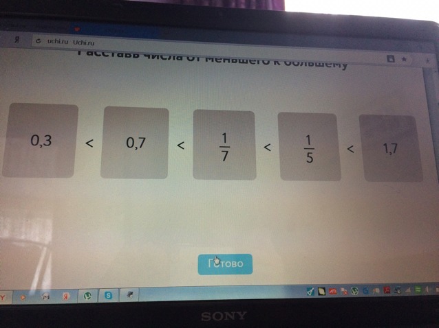 Поставь числа от меньшего к большему.