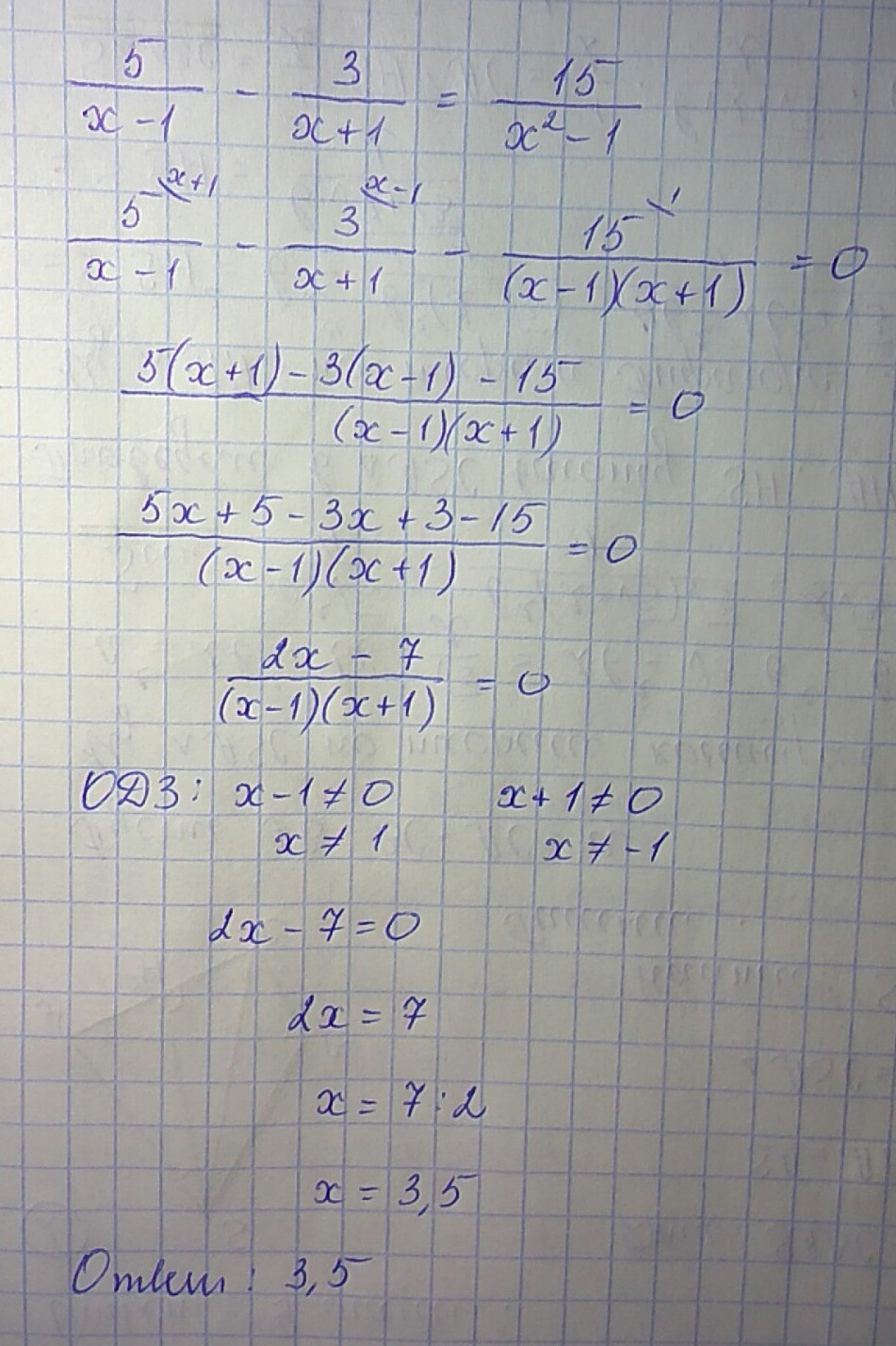 5/(x – 1) – 3/(x + 1) = 15/(x2 – 1)