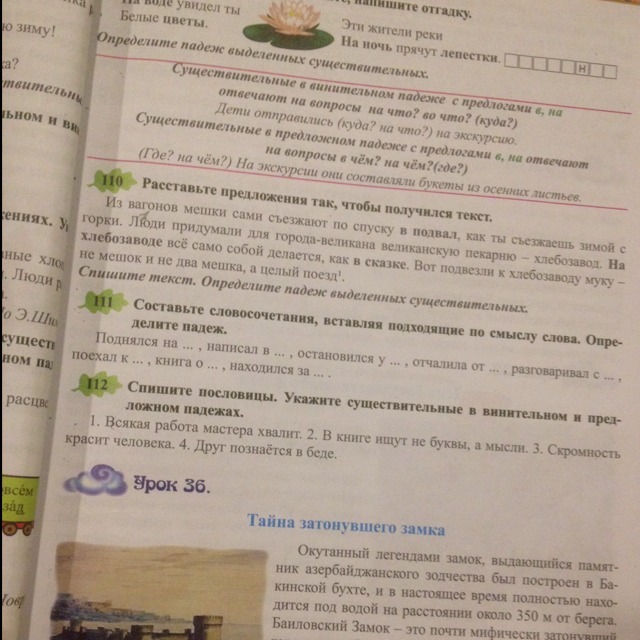 Помогите пожалуйста упр 110 текст я написал просто надо определить из выделенных сущ-ных падеж и упр 112 тоже пожаааалуйстаа ❤️❤️❤️