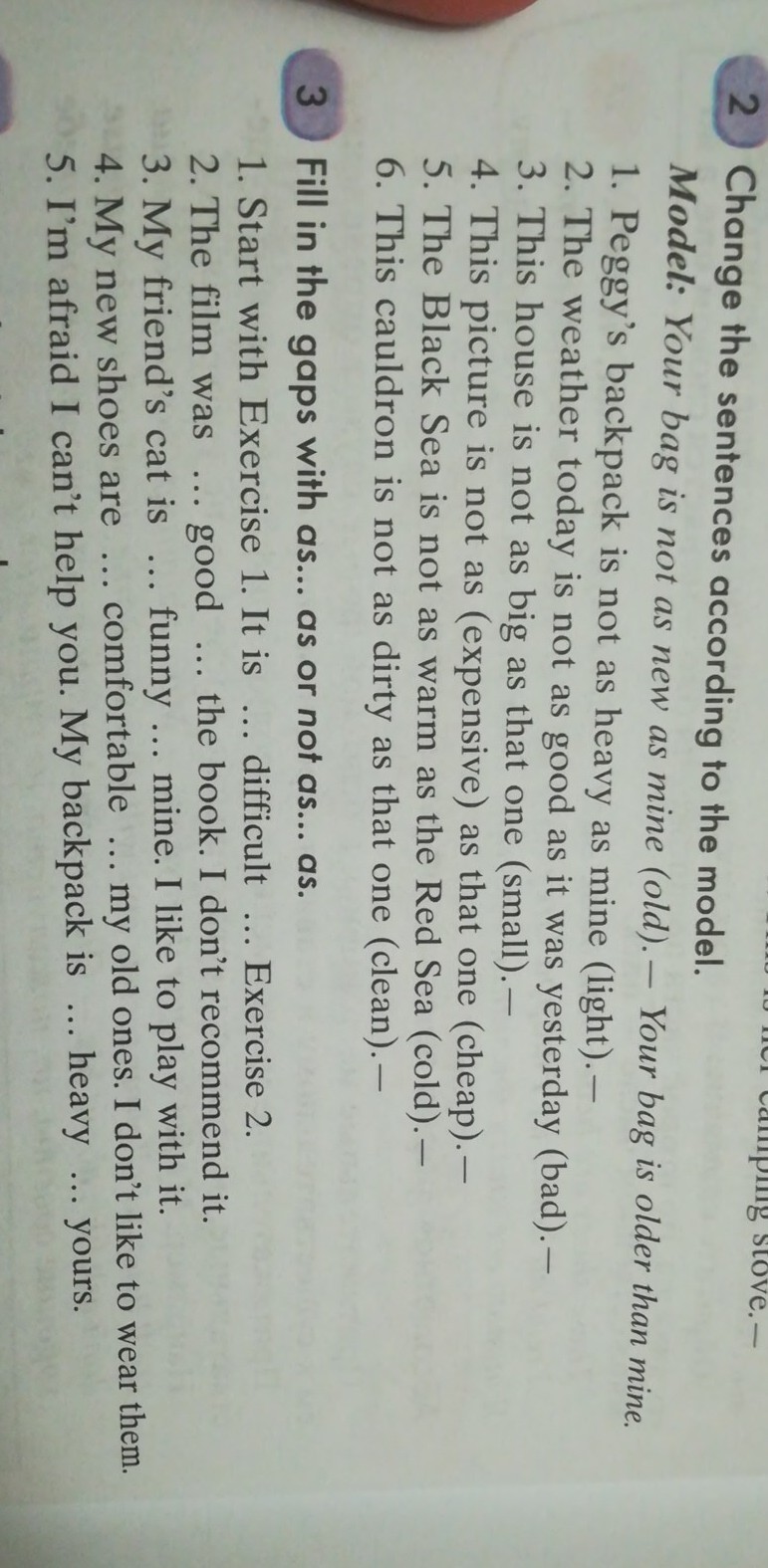 4) My new shoes are not as comfortable as my old ones.