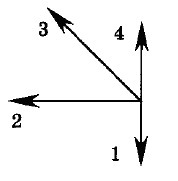 На рис. А показаны направления скорости и ускорения тела в инерциальной системе отсчёта в определённый момент времени. Какая из стрелок (1-4) на рис. Б соответствует направлению равнодействующей всех сил, действующих на тело в этот момент времени?
