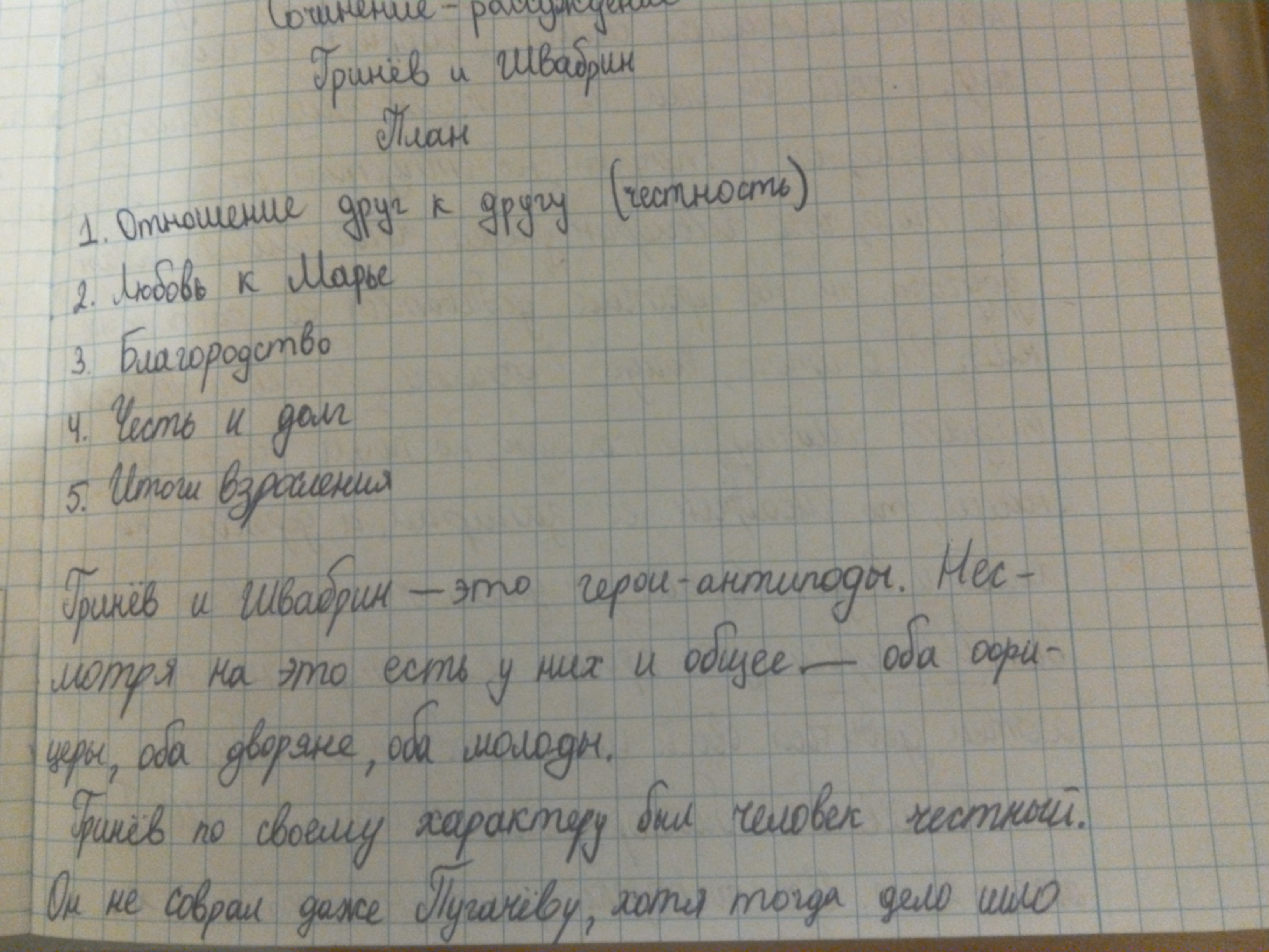 2)Основная часть (Сходства и различие героев) , отношение к службе , отношение к присяге , отношение к Маше.