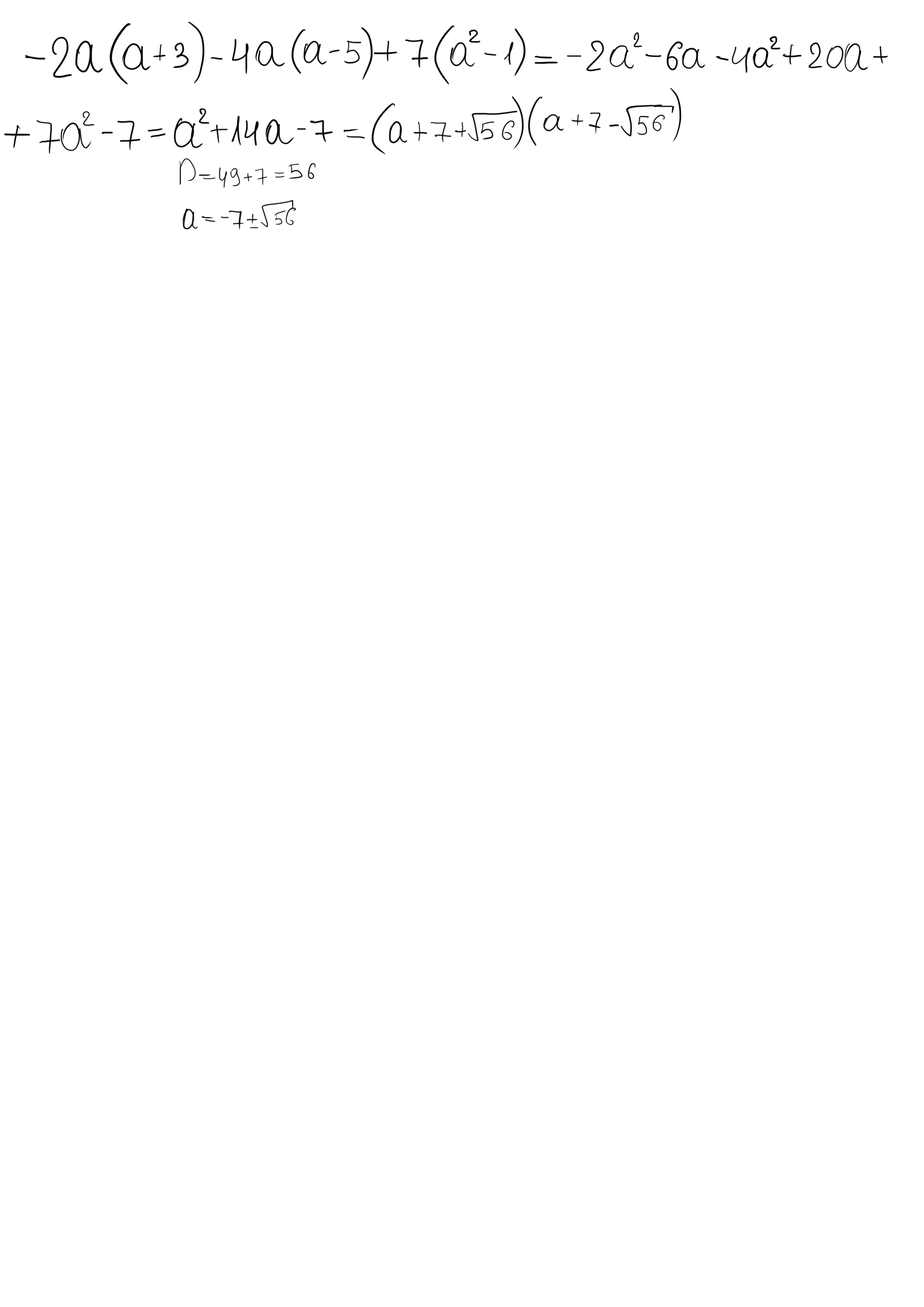 Упростить выражение -2a(a+3)-4a(a-5)+7(a^2-1)